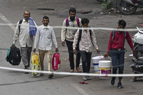 Sejumlah warga membawa barang saat melarikan diri akibat konflik Pakistan dan India di Poonch yang dikelola India, Jumat (9/5/2025). Foto: Punit Paranjpe/AFP