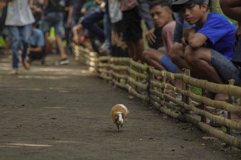 Sejumlah ekor marmot beradu kecepatan dalam tradisi Karapan Marmot di Desa Tegalbangsri, Kecamatan Ranuyoso, Lumajang, Jawa Timur, Minggu (18/5). Foto: Irfan Sumanjaya/ANTARA FOTOTampak para warga sangat antusias dalam menyaksikan tradisi yang mirip dengan tradisi Karapan Sapi di Madura. Foto: Irfan Sumanjaya/ANTARA FOTOPerlombaan yang diikuti 48 peserta tersebut merupakan tradisi menjelang musim kemarau sekaligus sarana hiburan bagi warga sekitar. Foto: Irfan Sumanjaya/ANTARA FOTOFoto: Irfan Sumanjaya/ANTARA FOTO