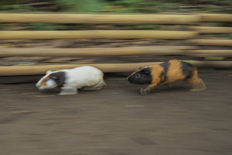 Sejumlah ekor Marmot beradu kecepatan dalam tradisi Karapan Marmot di Desa Tegalbangsri, Kecamatan Ranuyoso, Lumajang, Jawa Timur, Minggu (18/5).