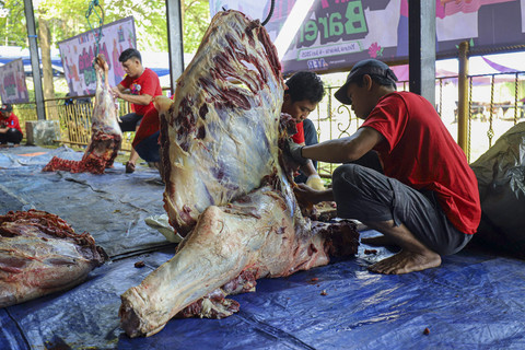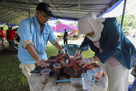 Sebanyak 24 ekor sapi dan 15 ekor kambing disembelih dan dibagikan kepada lebih dari 4.200 penerima manfaat.