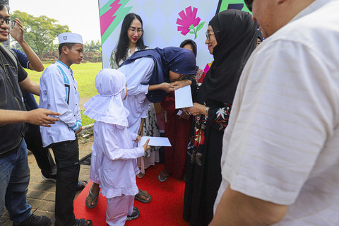 Direktur Utama TIKI, Yulina Hastuti (keempat kiri) saat acara 'TIKI-JNE Idul Adha Bareng' di Yayasan Taman Yatim Piatu Tuna Netra (YATUNA), Jakarta, Jumat (6/6/2025). Foto: Iqbal Firdaus/kumparan